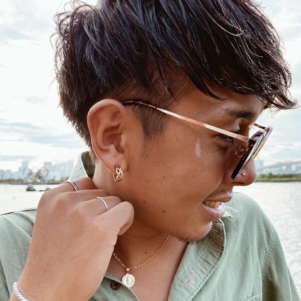 繊細で美しい彫り込みのハワイアンフープピアス。